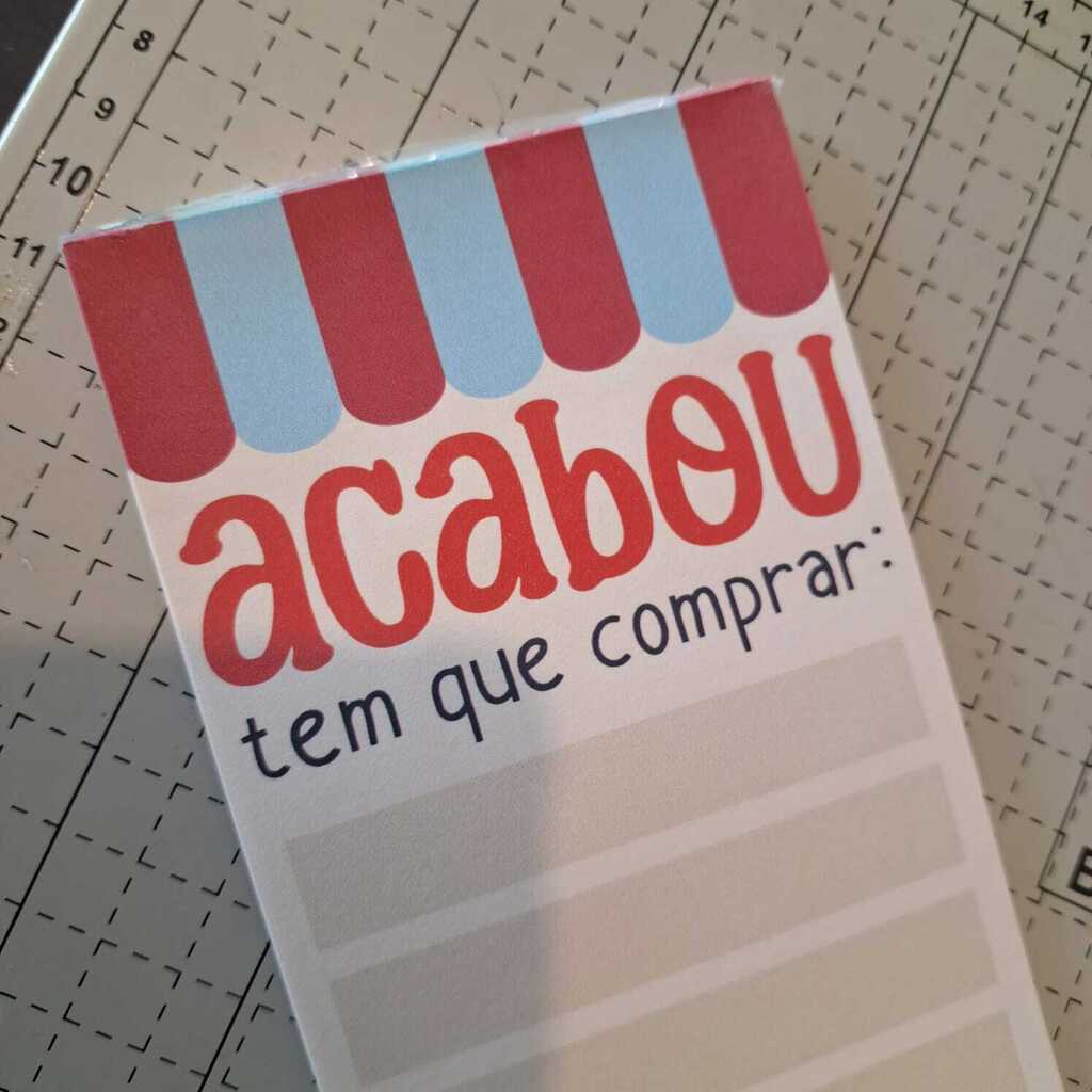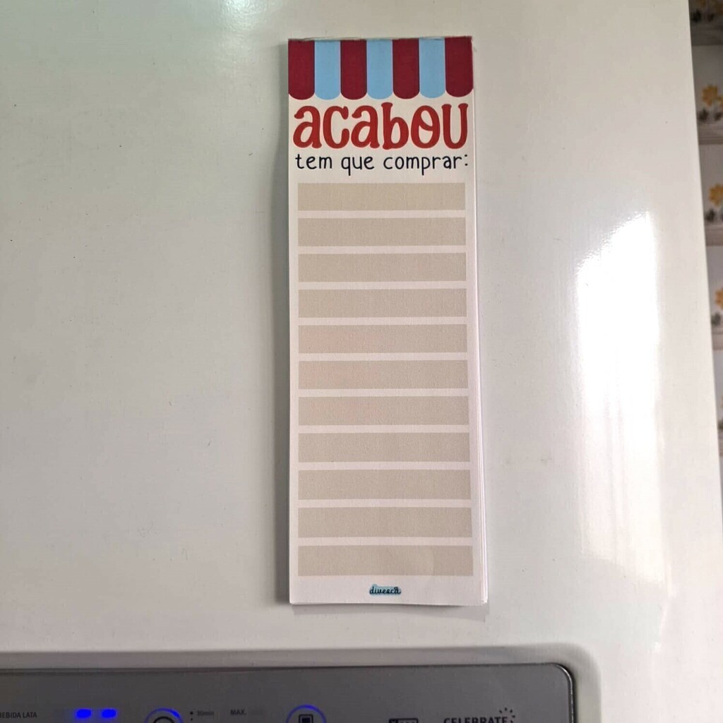Bloco de lista de compras com ímã pra você deixar na porta da geladeira e já escrever que acabou o leite na hora que aconteceu.