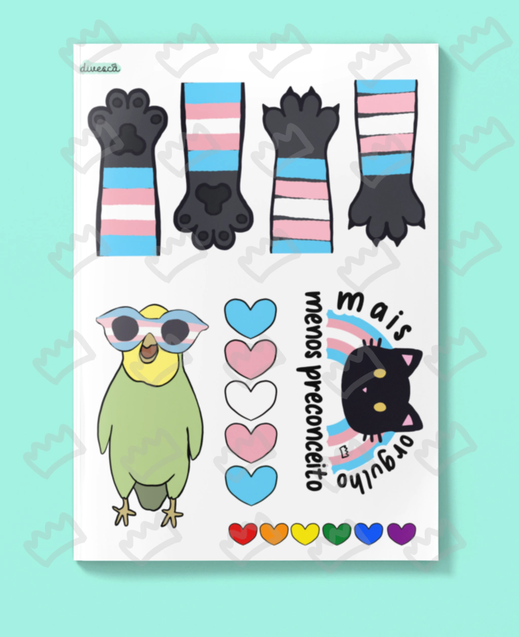 Cartela de adesivos termocolantes para tecido com arte sobre orgulho LGBTQ+ bandeira trans